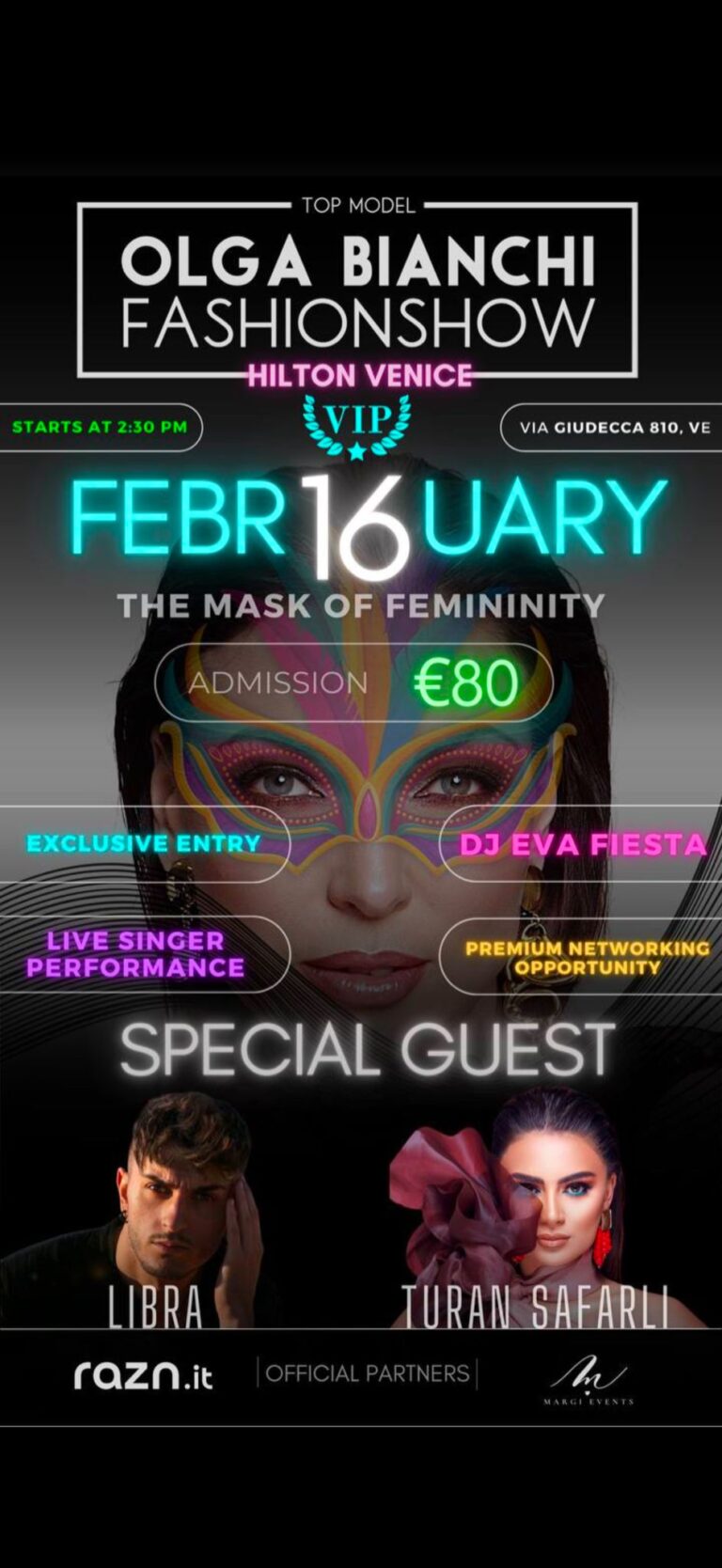 ๐ญ Your invitation to the unique Fashion Show “Mask of Femininity,” which will take place on February 16th at the five-star Hilton Molino Hotel, right in the midst of the magical Venice Carnival.
